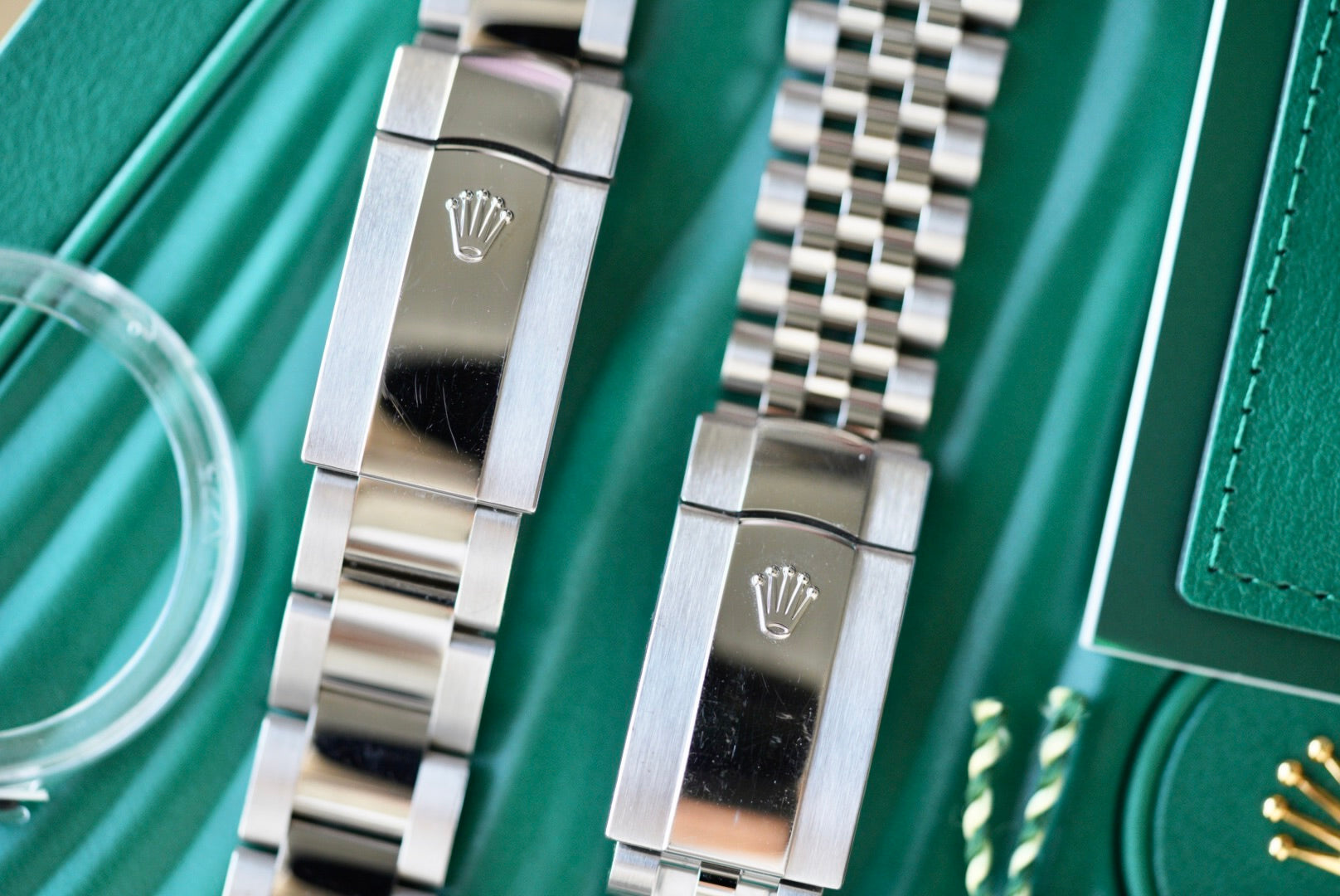 Comes with: Watch, box, care, and the Jubilee and Oyster bracelet (optional).