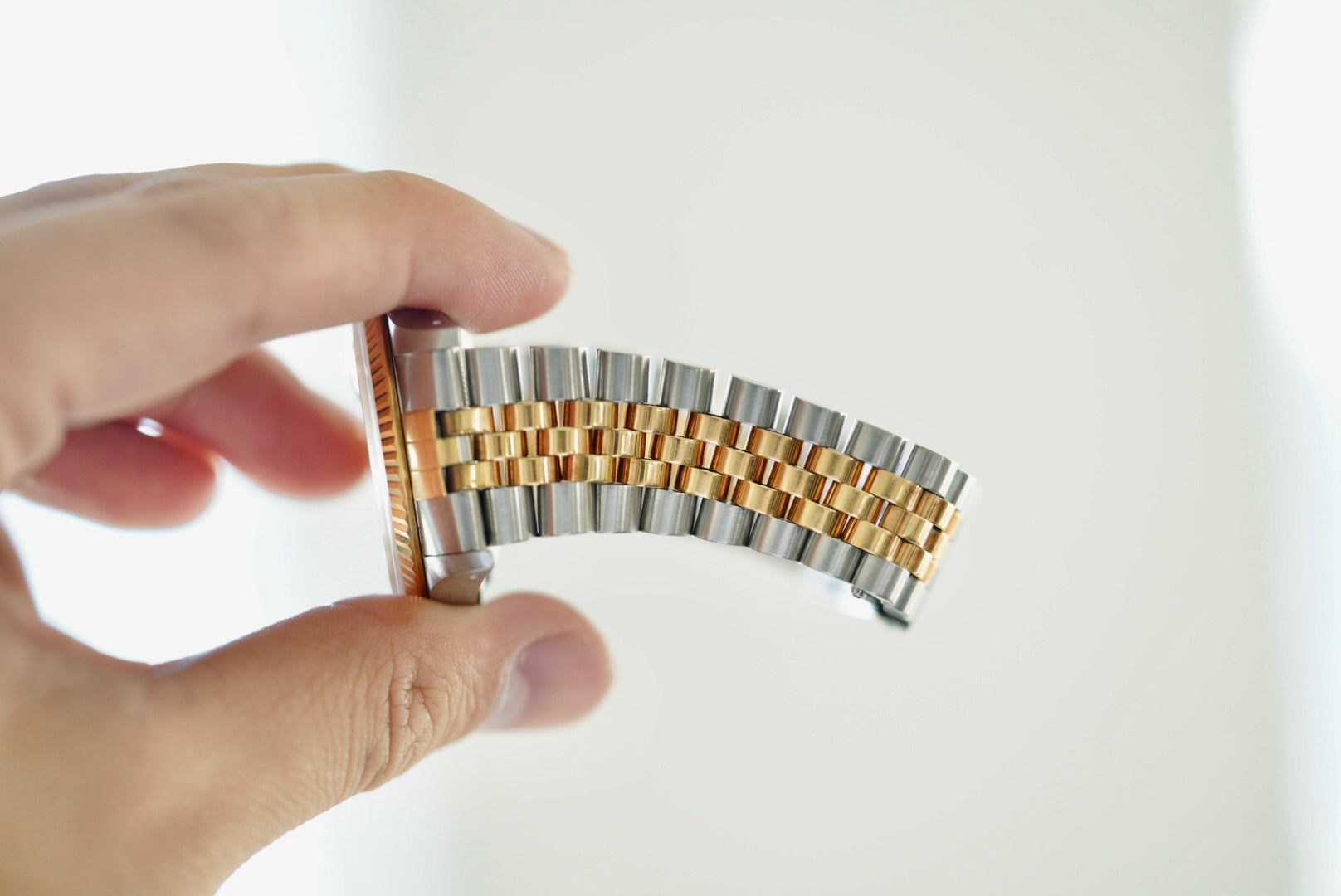 - Jubilee bracelet with 18 total links. Will fit up to a 7” wrist.