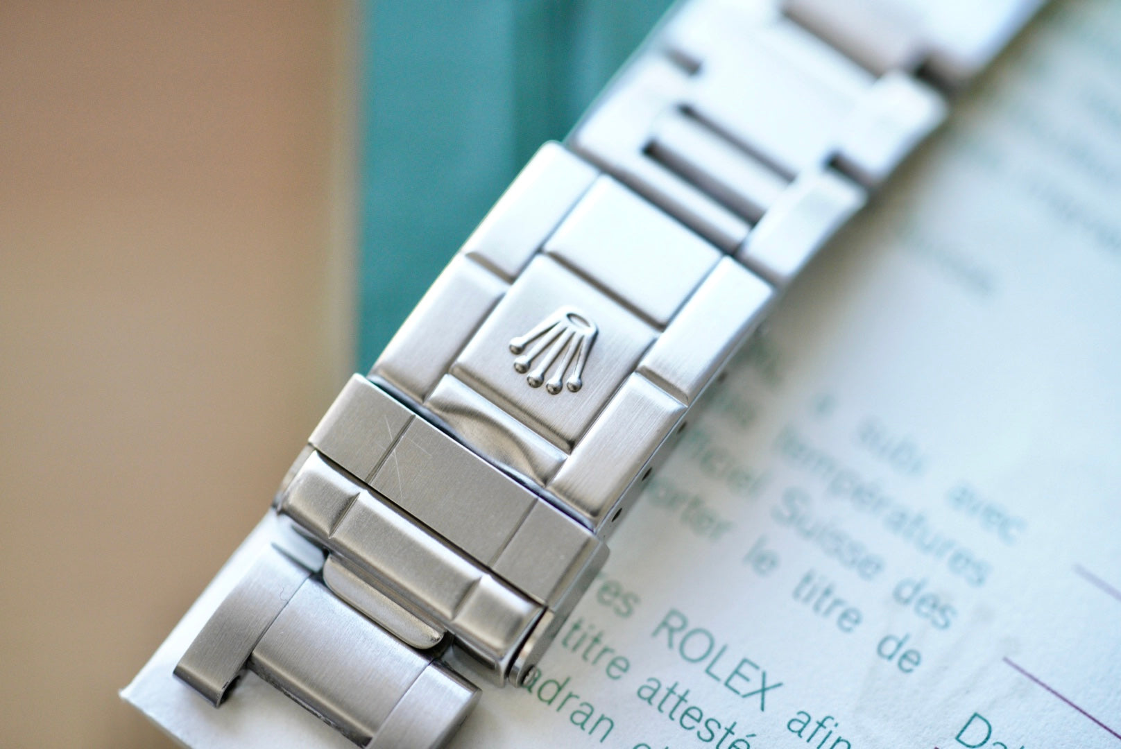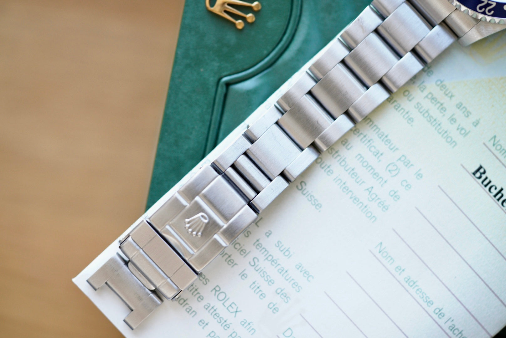 Comes with: Watch, box, outer box, and papers. Inner box insert is present but missing the cushion. Full link bracelet.