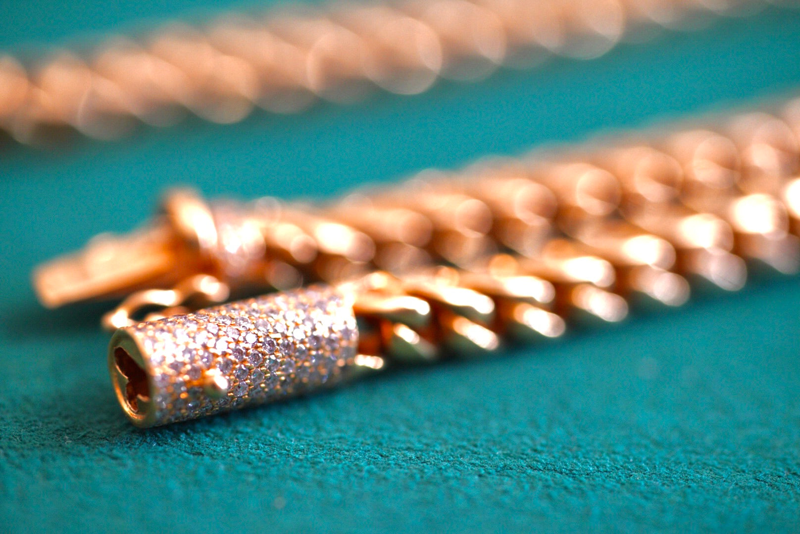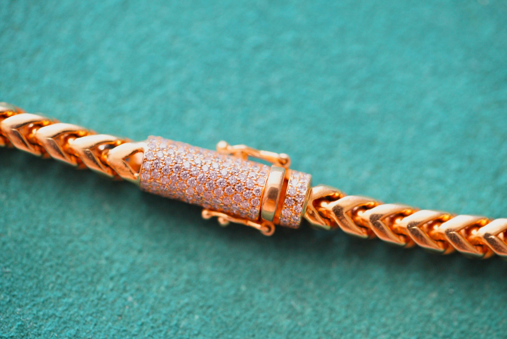 14k Gold Wheat (Spiga) Chain with Diamond Pavé Barrel Clasp