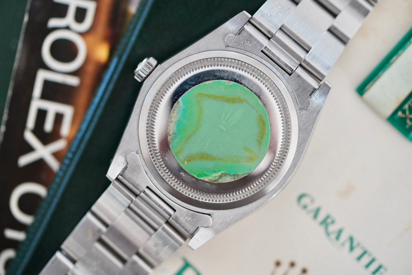 - Clean black dial with gold markers developing a beautiful patina