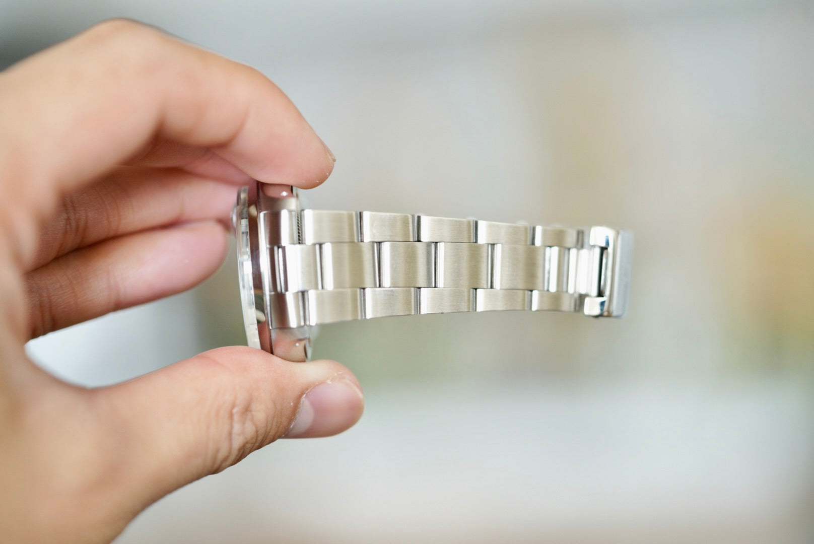 - Fully linked oyster bracelet that remains tight